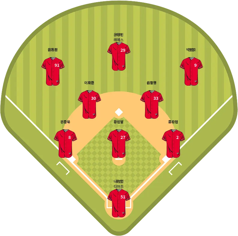 - 루인 디아즈는 타율 .308, 홈런 10개, 타점 58개로 중심타자 역할.