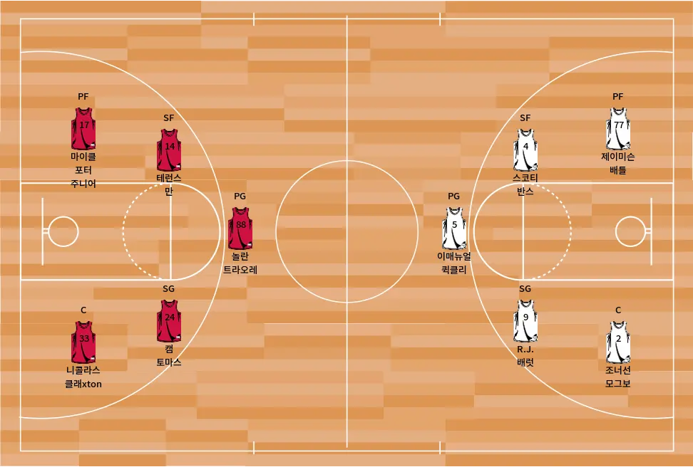 토론토는 수비 집중력과 리바운드 장악력에서 우위를 점하고 있습니다. 높은 에너지와 빠른 전환 수비를 통해 경기의 흐름을 주도할 가능성이 큽니다. 반면, 브루클린은 높은 3점 성공률과 공격 효율성을 무기로 랩터스의 수비를 흔들 것으로 예상됩니다.