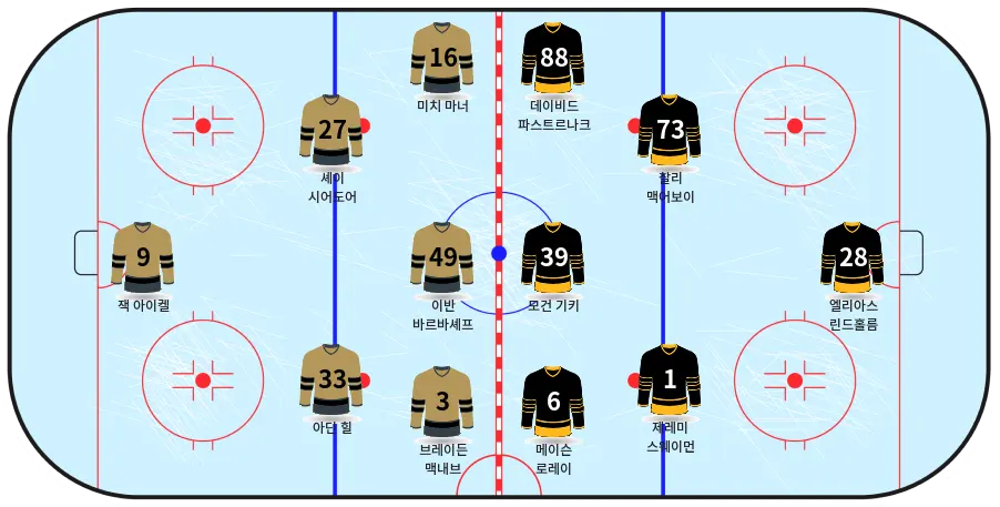 - 찰리 맥어보이 – 블루라인을 책임지는 핵심 수비수로, 경기 조율 능력이 뛰어남.