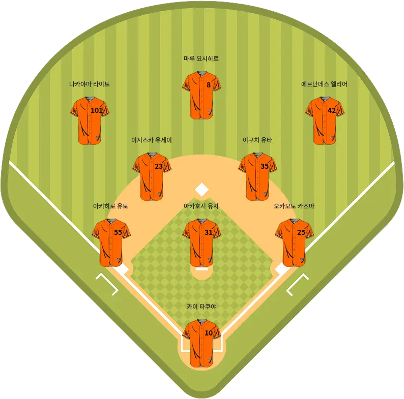 - 오카모토 카즈마 – 팀의 주력 타자이자 꾸준한 타점 생산원.